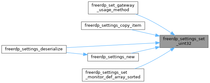 | WINPR_ATTR_NODISCARD FREERDP_API BOOL freerdp_settings_set_uint32 | ( | rdpSettings * | settings, |